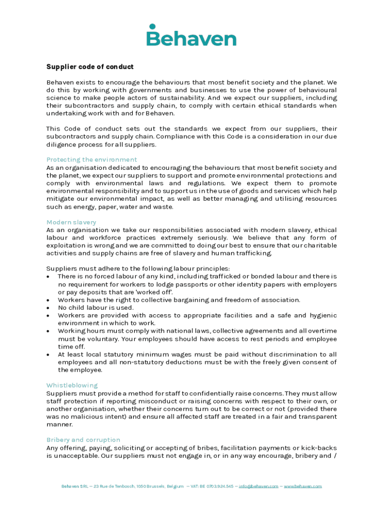 Get the free Supplier Code of Conduct