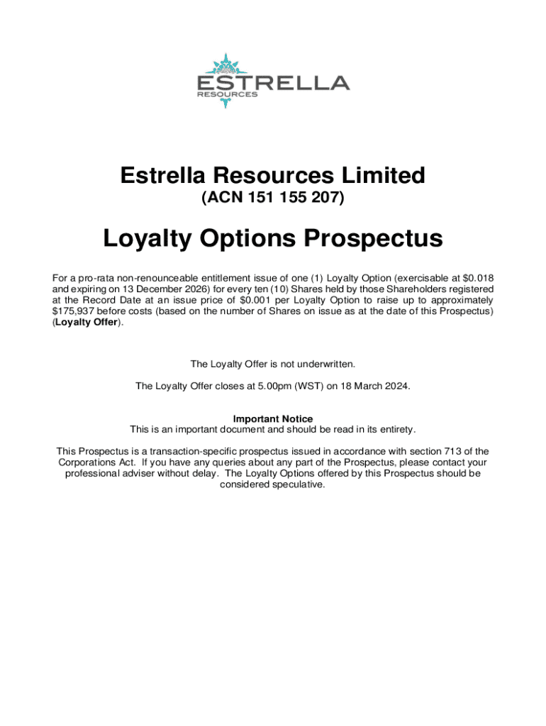 Este Prospectus es un prospecto específico de la transacción emitido de acuerdo con la sección 713 de la Ley de Corporaciones, que detalla una oferta de opciones de lealtad no renunciables. Se