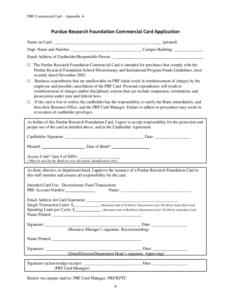 Obtain the PRF commercial card appendix form.