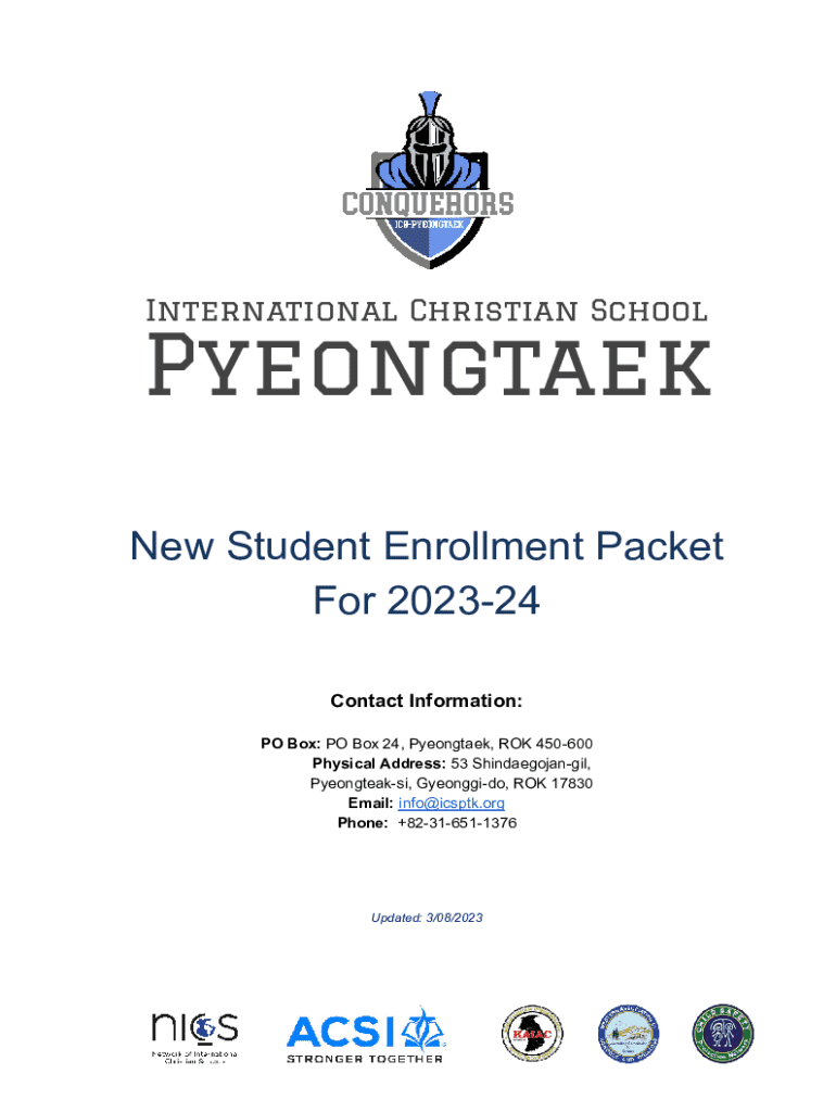 Este paquete de inscripción está diseñado para recopilar información necesaria sobre nuevos estudiantes que solicitan admitir en la Escuela Cristiana Internacional de Pyeongtaek para el año escolar