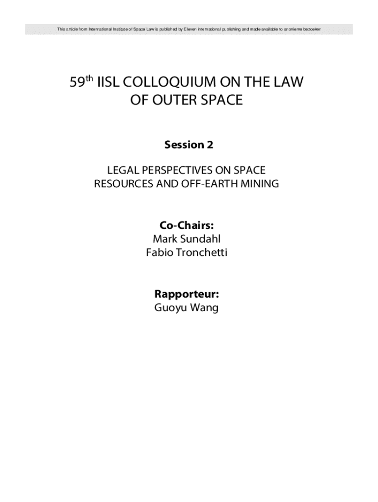 This article from International Institute of Space Law is published by Eleven international publishing and made available to anonieme bezoeker59th IISL COLLOQUIUM ON THE LAW OF OUTER SPACE Session