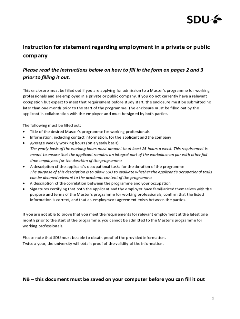 Get the free Statement of Employment for Master’s Programmes for Working Professionals