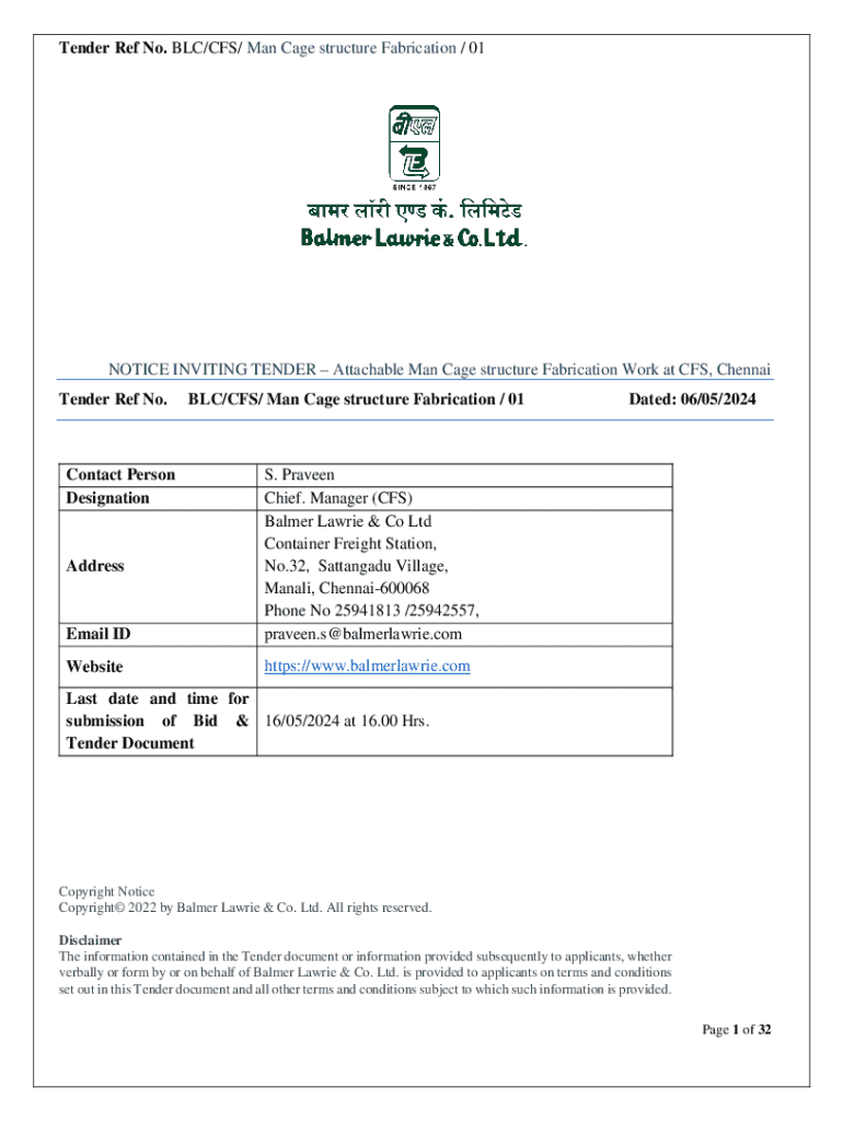 Get the free Tender Reference Blc/cfs/ Man Cage Structure Fabrication / 01