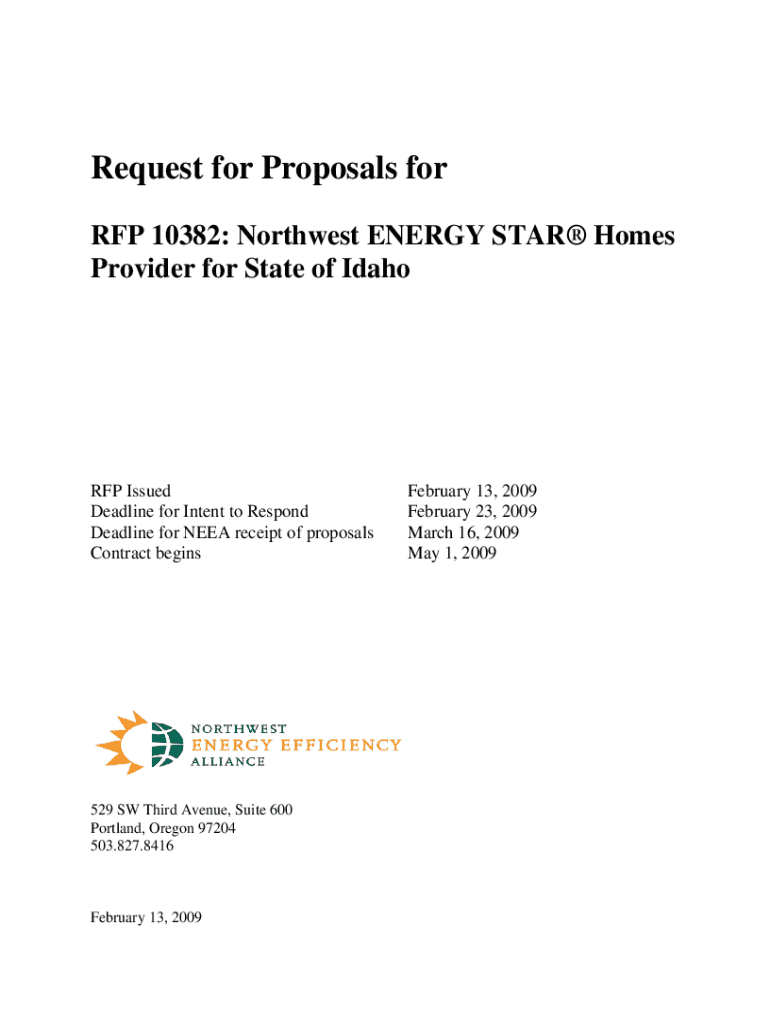 Get the free Rfp 10382: Northwest Energy Star Homes Provider for State of Idaho