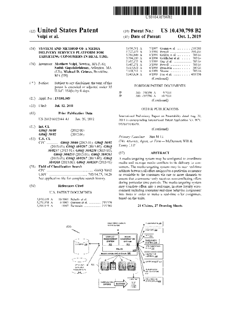US010430798B2 is a patent issued by the United States Patent and Trademark Office (USPTO) that defines a specific invention or technology.