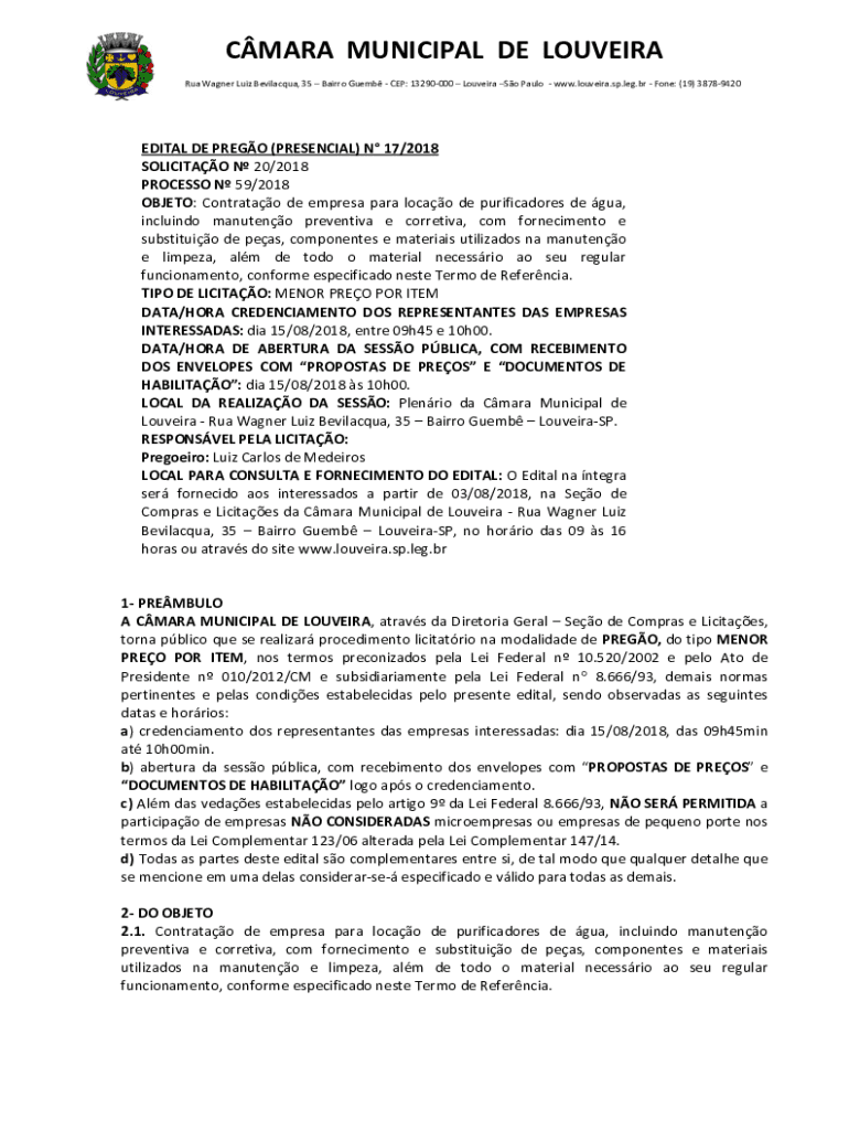Obtenha o gratuito Edital De PregÃo (presencial) N° 17/2018