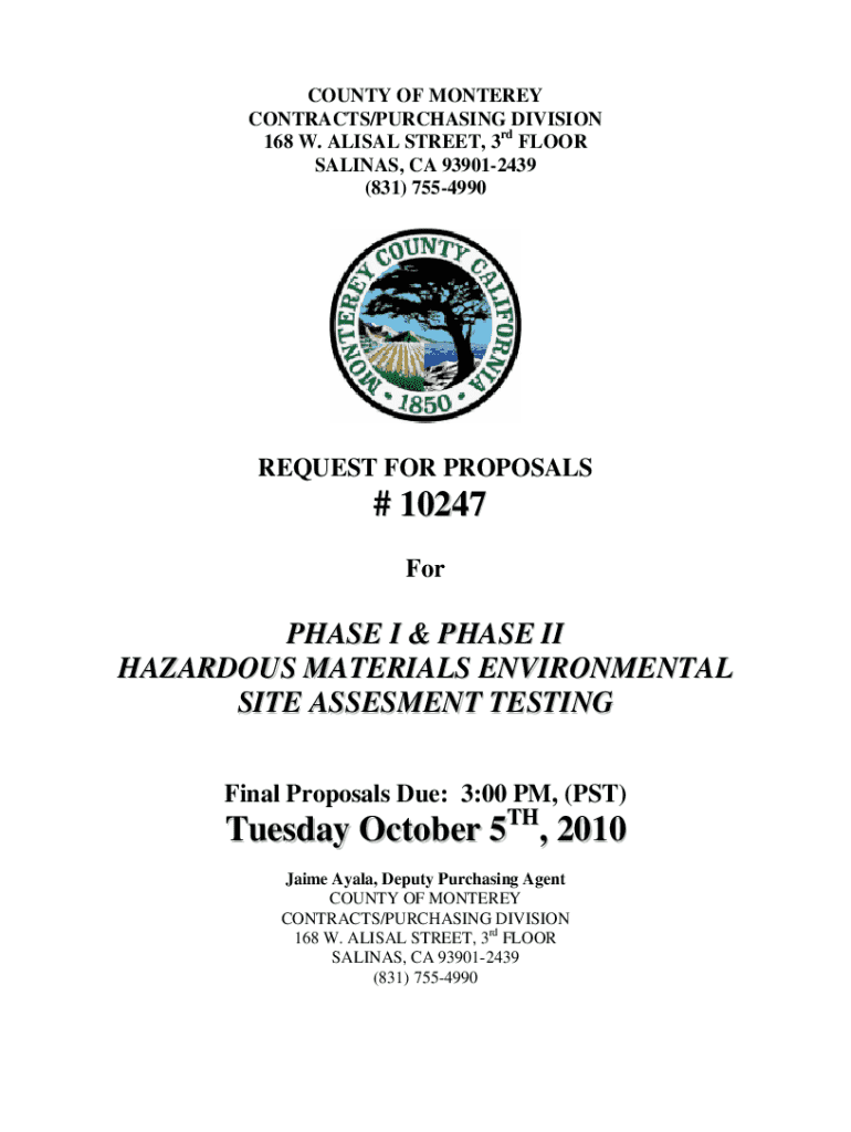 Get the free Rfp # 10247 Phase I & Ii Hazardous Materials Testing