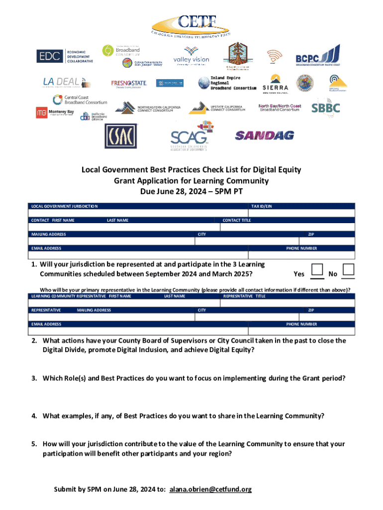Get the free Local Government Best Practices Check List for Digital Equity Grant Application