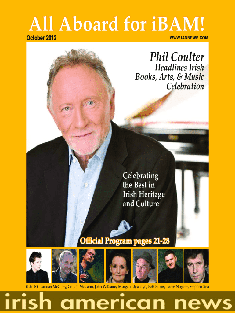 All Aboard for iBAM!October 2012www.IAnnews.comPhil CoulterHeadlines Irish Books, Arts, & Music CelebrationCelebrating the Best in Irish Heritage and CultureOfficial Program pages 2128(L to R): Damian