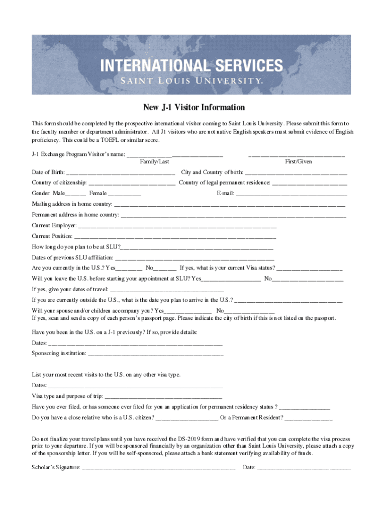 Get the free New J-1 Visitor Information - cs slu