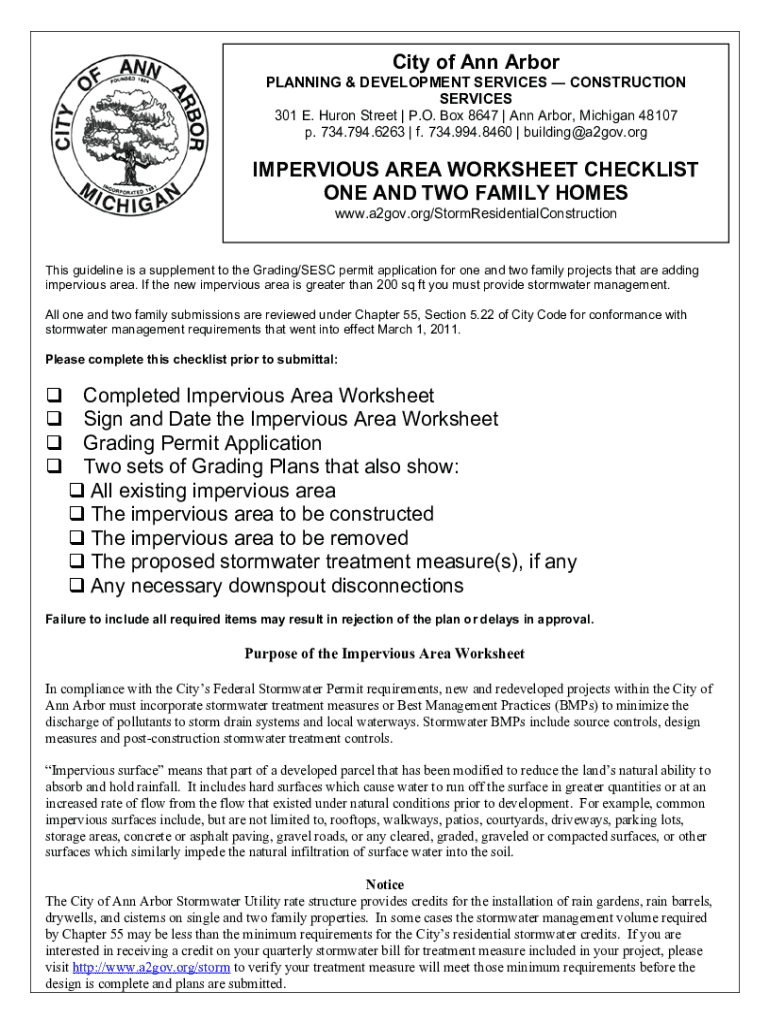 Get the free Impervious Area Worksheet Checklist