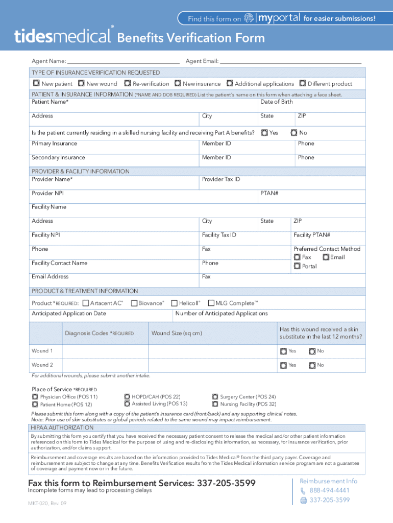 Get the free Benefits Verification Form