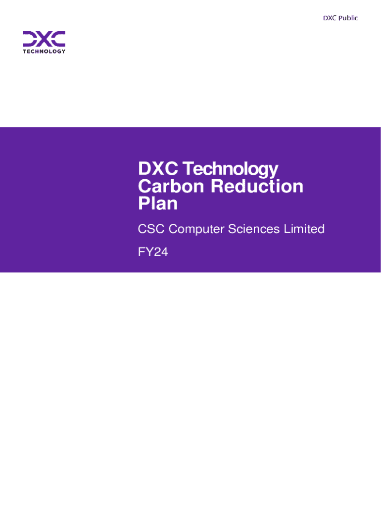 DXC PublicDXC Technology Carbon Reduction Plan CSC Computer Sciences Limited FY24DXC PublicCarbon Reduction Plan Supplier name: CSC Computer Sciences Limited Publication date: 16.09.2024Commitment