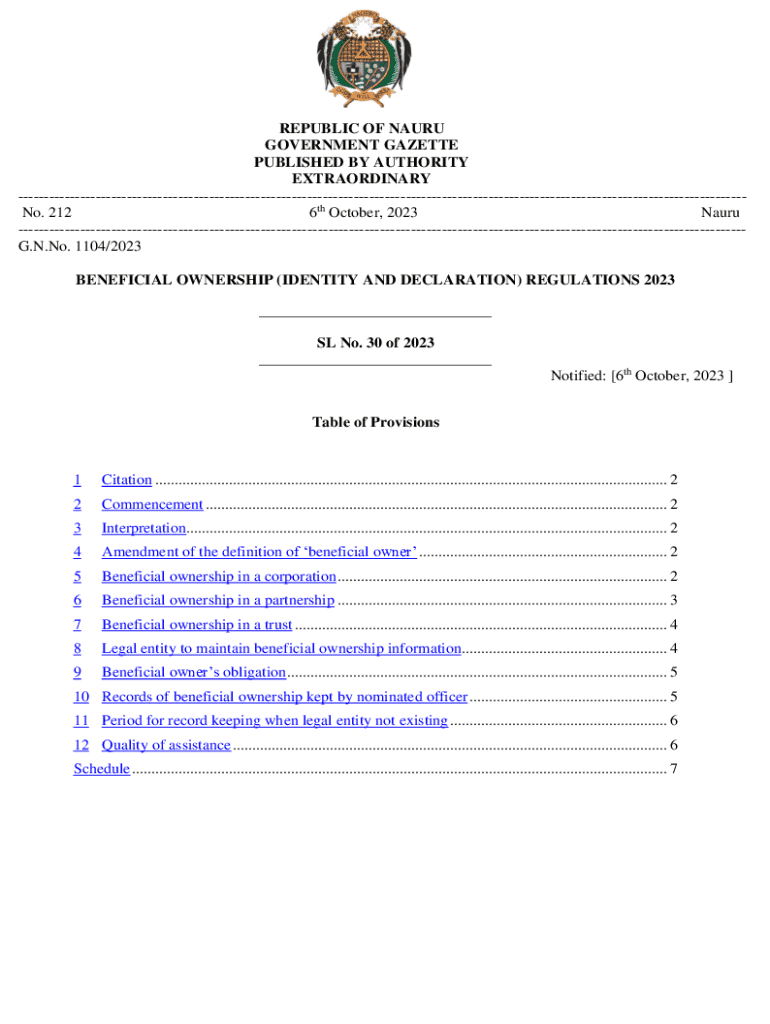 These Regulations govern the identification and declaration of beneficial ownership, as required by the Beneficial Ownership Act 2017. They outline the obligations of beneficial owners in corporations,