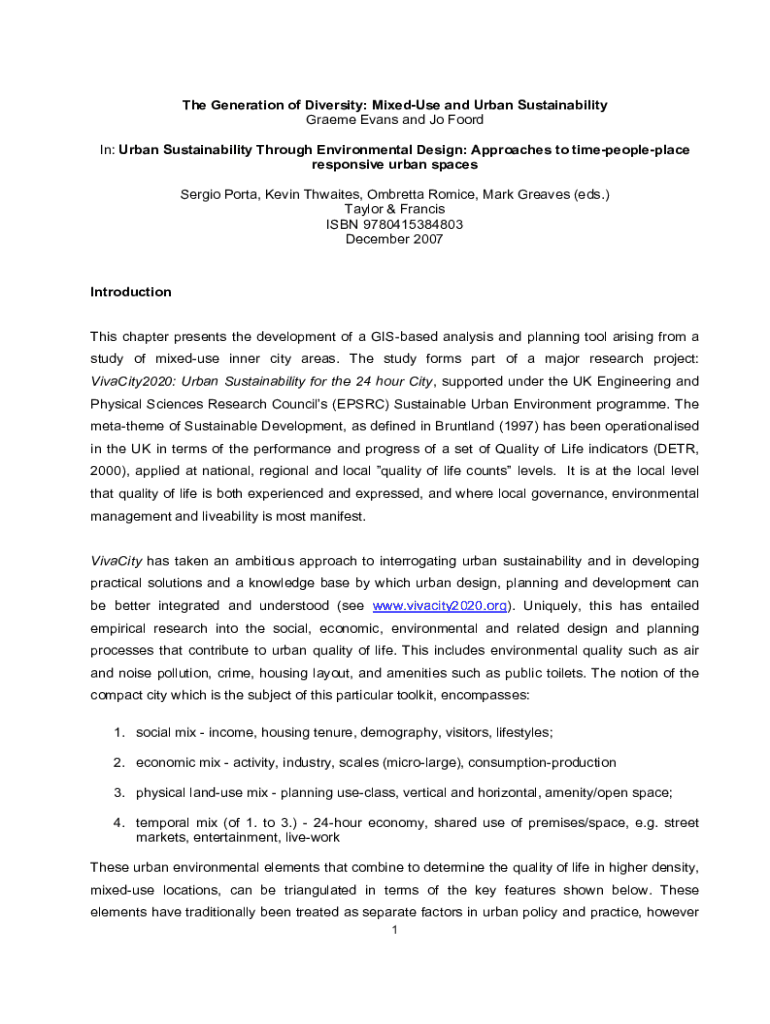 Get the free The Generation of Diversity: Mixed-Use and Urban Sustainability