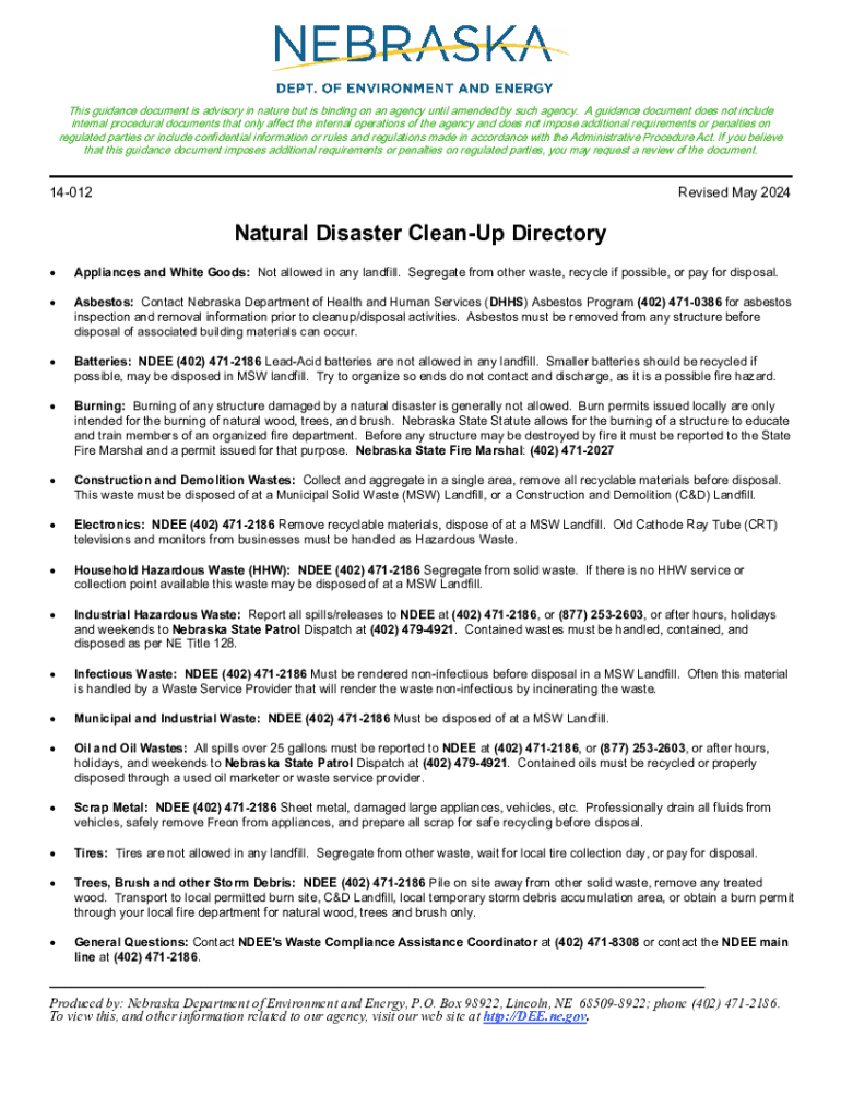 Get the free Natural Disaster Clean-up Directory