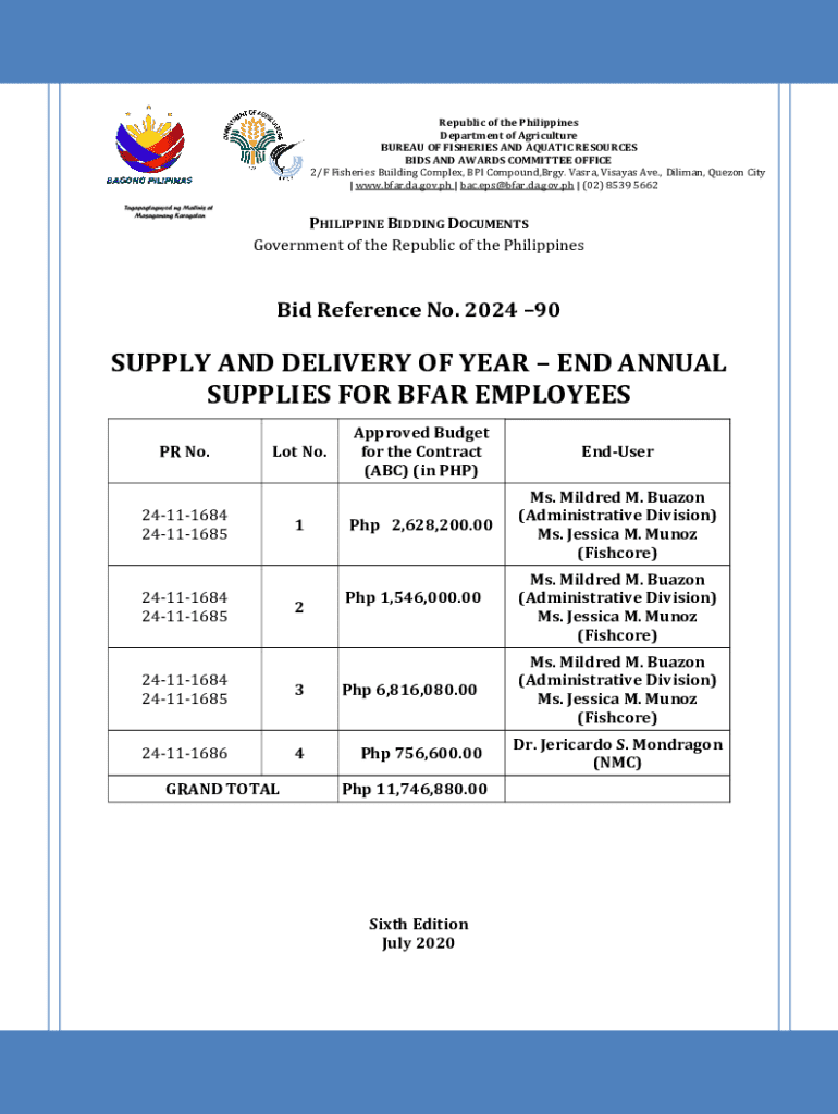 This document serves as an invitation to bid for the supply and delivery of year-end annual supplies for BFAR employees, detailing the bidding process, requirements, and conditions under which bids must be submitted.