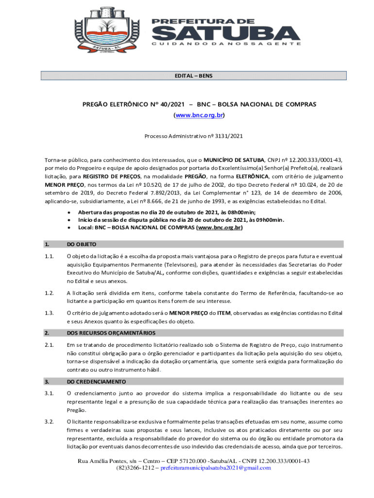 Obtenha o gratuito Edital – Bens