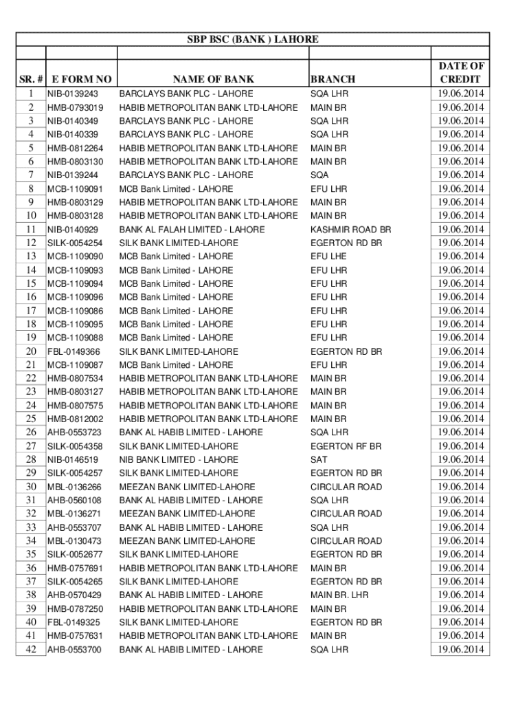 SBP BSC (BANK ) LAHORESR. # 1 2 3 4 5 6 7 8 9 10 11 12 13 14 15 16 17 18 19 20 21 22 23 24 25 26 27 28 29 30 31 32 33 34 35 36 37 38 39 40 41 42E FORM NONAME OF BANKBRANCHNIB0139243BARCLAYS BANK PLC
