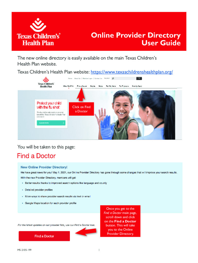 Online Provider Directory User Guide The new online directory is easily available on the main Texas Childrens Health Plan website. Texas Childrens Health Plan website: https://www.texaschildrenshealthplan.org/Click