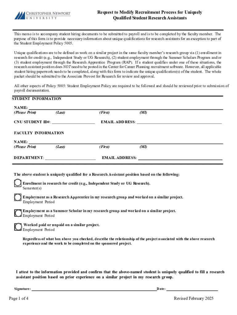 Get the free Request to Modify Recruitment Process for Uniquely Qualified Student Research Assist...