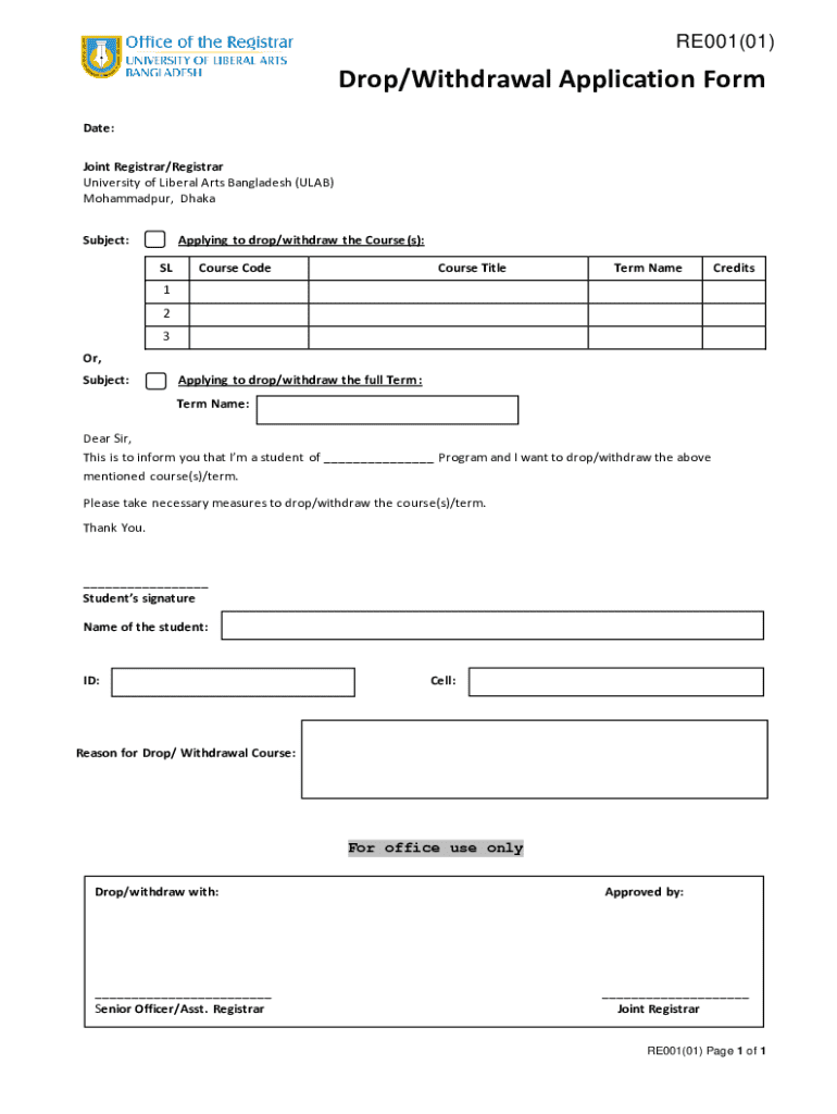 Get the free Drop/withdrawal Application Form - ulab edu