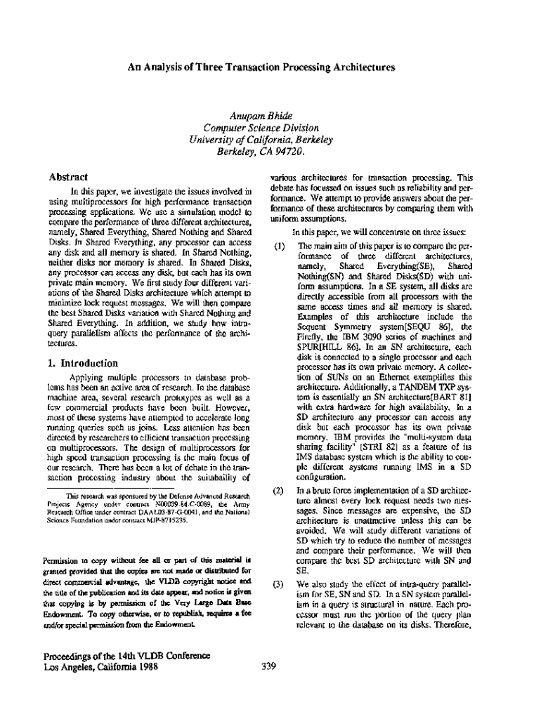 Get the free An Analysis of Three Transaction Processing Architectures