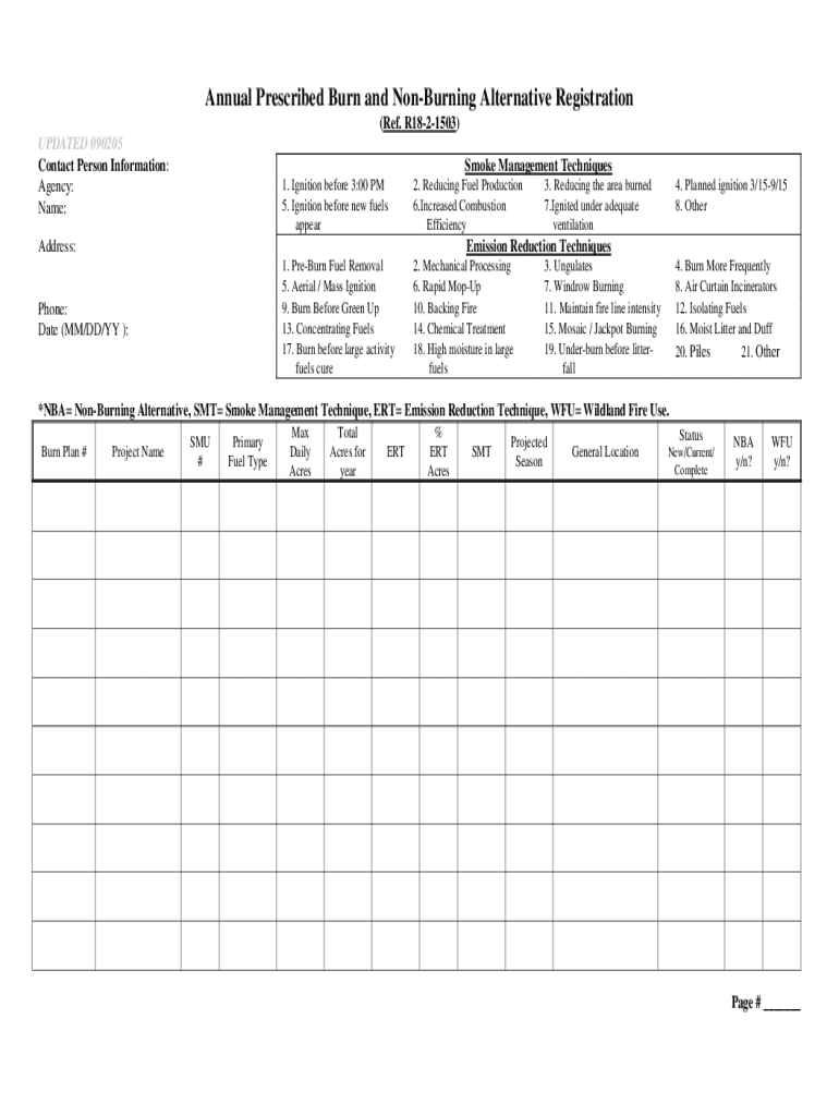 Get the free Annual Prescribed Burn and Non-burning Alternative Registration