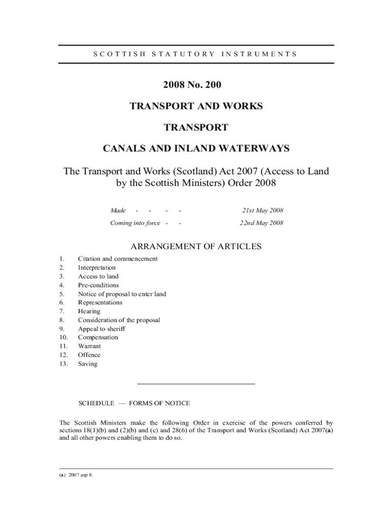 Get the free Transport and Works (scotland) Act 2007 (access to Land by the Scottish Ministers) O...