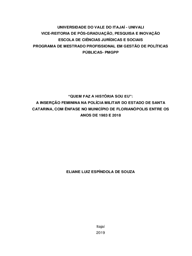 UNIVERSIDADE DO VALE DO ITAJA UNIVALI VICEREITORIA DE PSGRADUAO, PESQUISA E INOVAO ESCOLA DE CINCIAS JURDICAS E SOCIAIS PROGRAMA DE MESTRADO PROFISSIONAL EM GESTO DE POLTICAS PBLICAS PMGPPQUEM FAZ