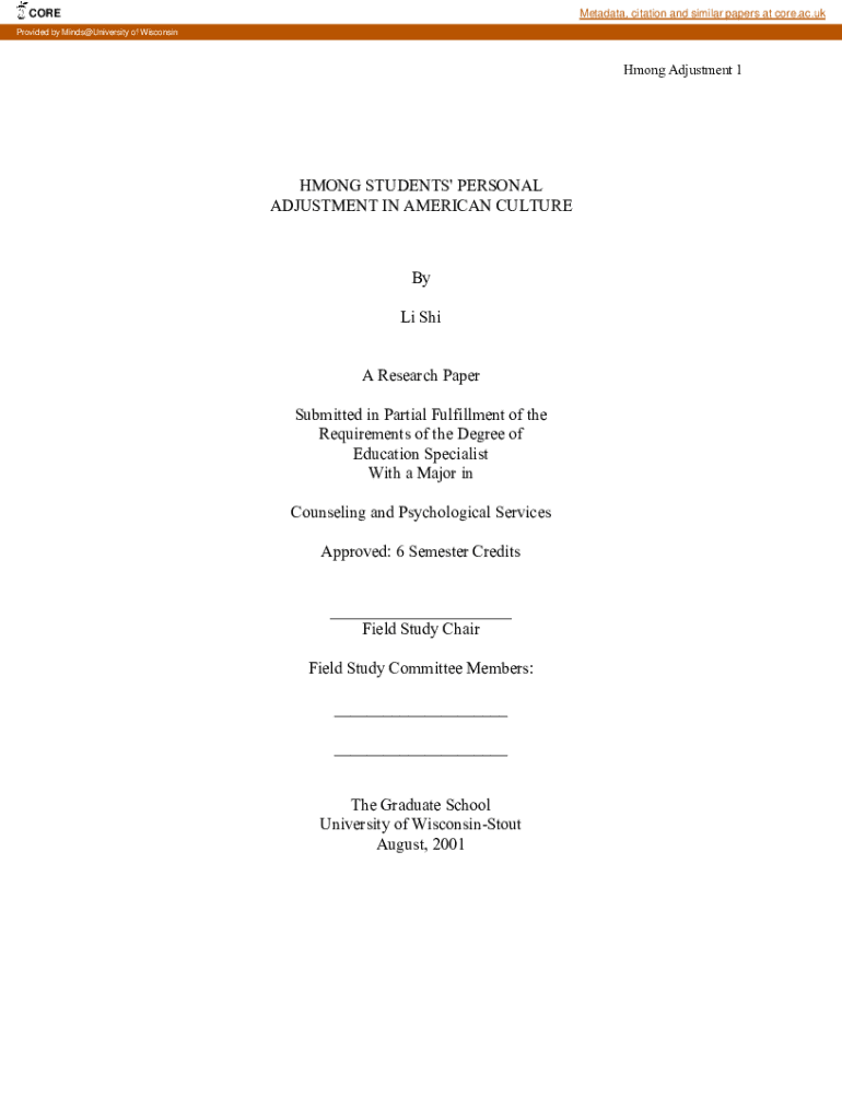 Hmong Adjustment Research Paper is not the form you're looking for?Search for another form here.