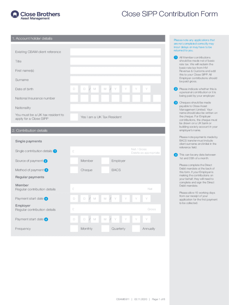 Fill out your close sipp contribution form online with pdfFiller!