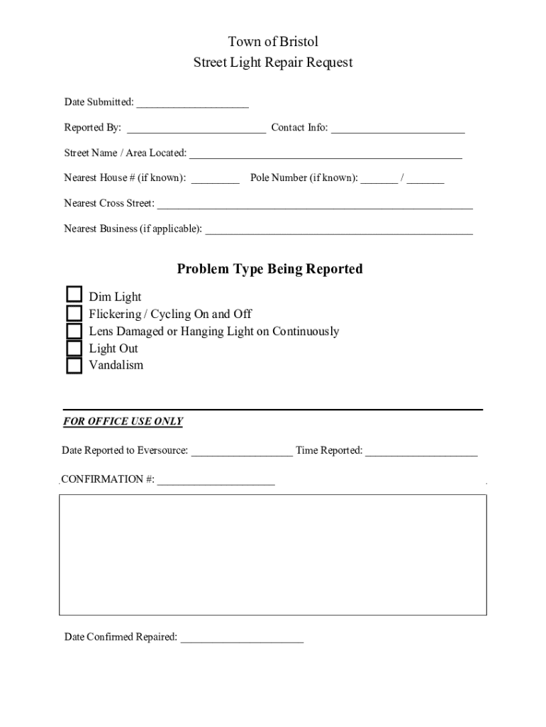 Get the free Street Light Repair Request