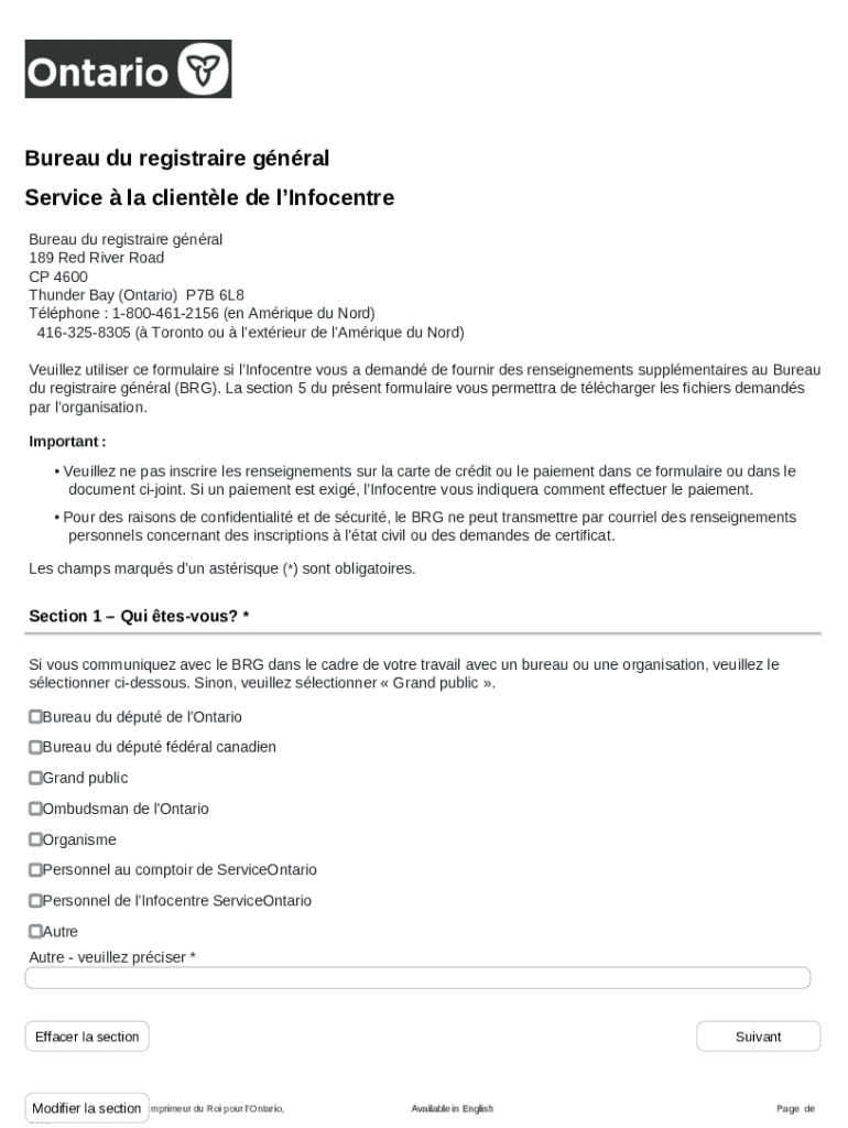 Get the free Bureau du registraire gnral - Service la clientle de lInfocentre. Bureau du registra...