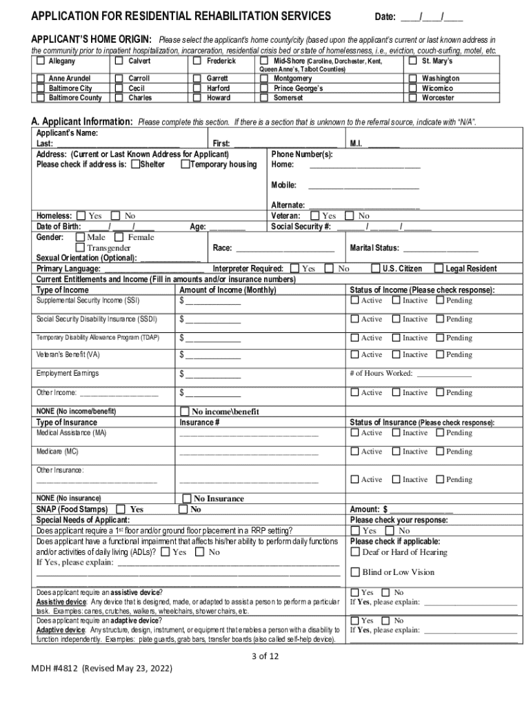 Get the free Residential Rehabilitation Program Application Form
