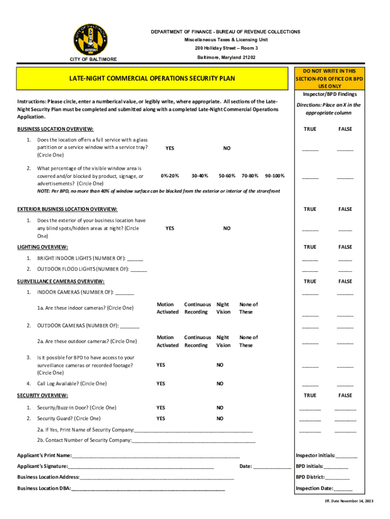 Get the free Late-night Commercial Operations Security Plan