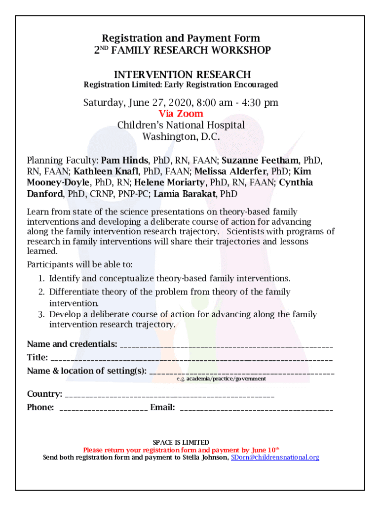 Este formulario es para la inscripción y el pago del 2º Taller de Investigación Familiar, programado para el 27 de junio de 2020, donde se presentarán intervenciones familiares basadas en teoría