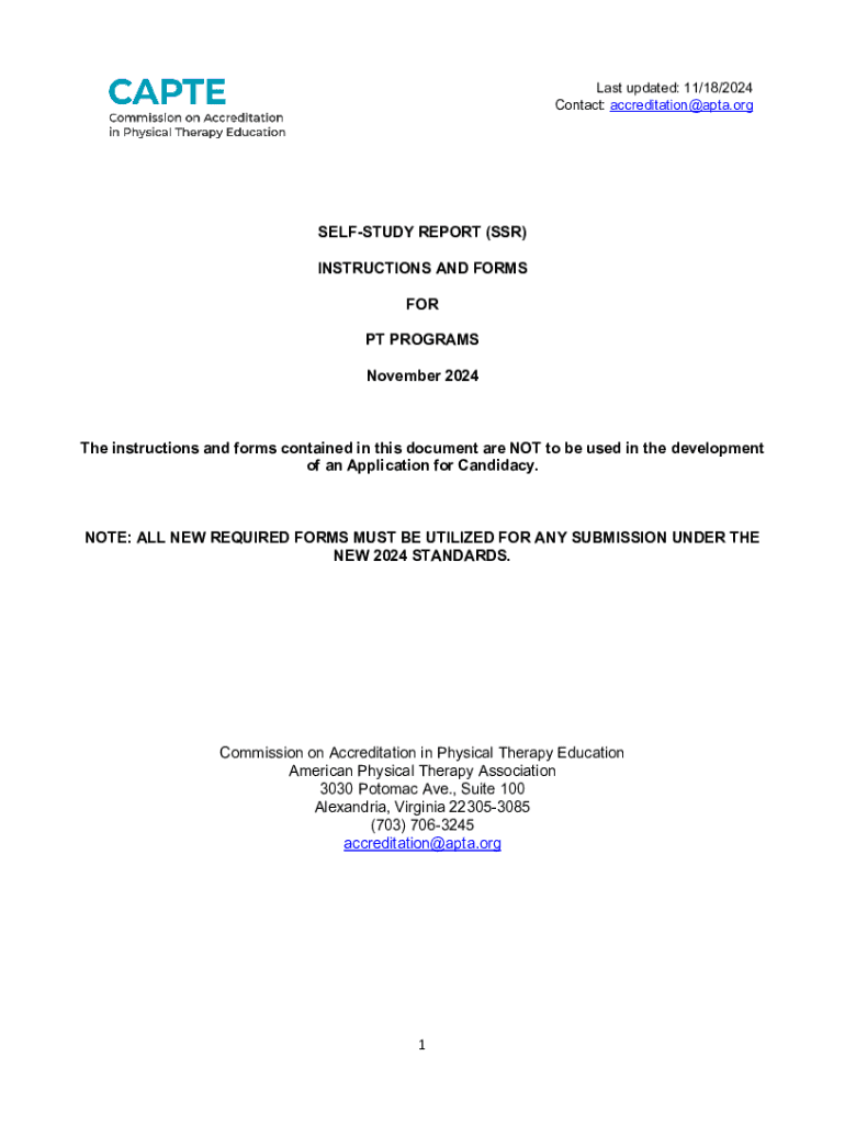 Get the free Self-study Report (ssr) Instructions and Forms for Pt Programs