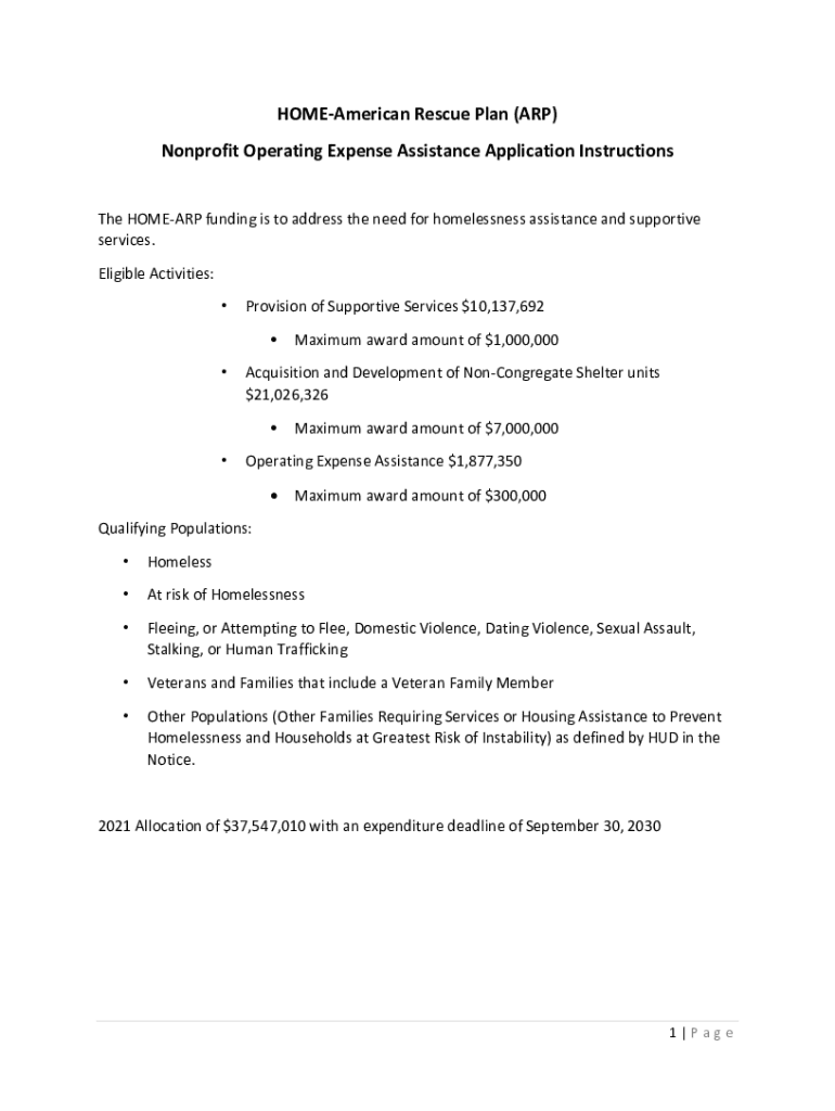 Get the free Nonprofit Operating Expense Assistance Application Instructions