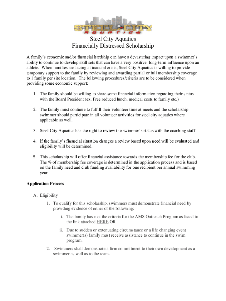 Get the free Financially Distressed Scholarship Application