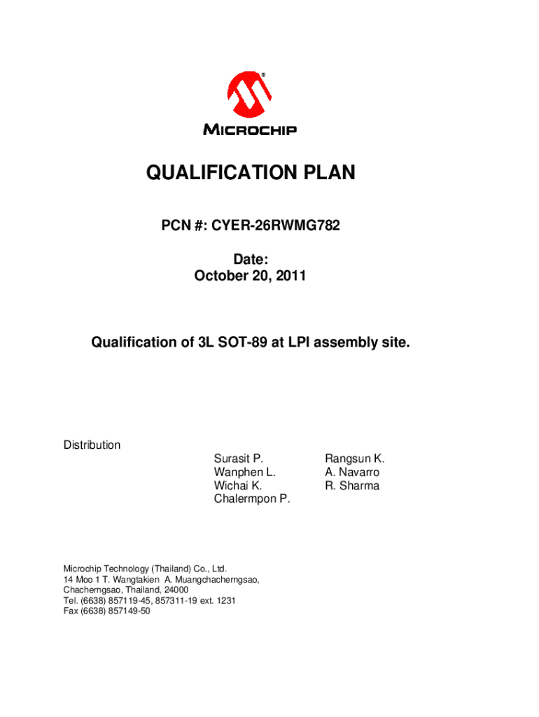 This document outlines the qualification process for the 3L SOT-89 package at the LPI assembly site, including details on parts, materials, reliability test plans, and specific testing conditions.