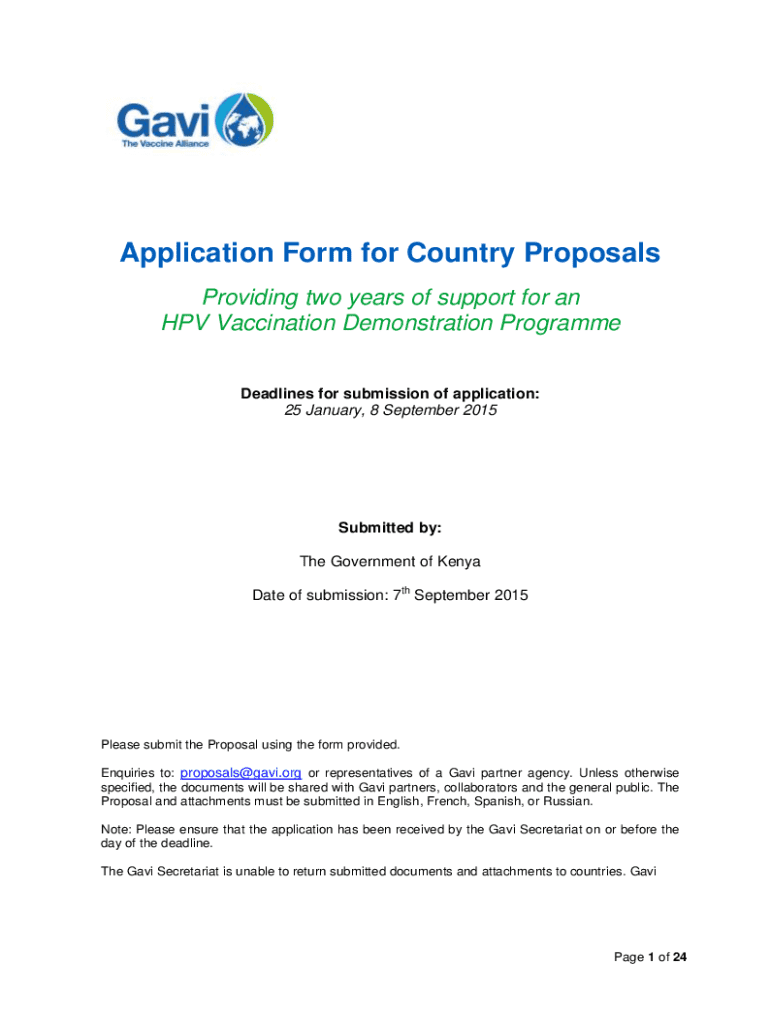 This document outlines the proposal for a two-year HPV Vaccination Demonstration Programme in Kenya, detailing strategies for vaccine delivery, population targets, funding mechanisms, and evaluation plans. It includes a comprehensive approach to addressing cervical cancer through vaccination and community engagement.