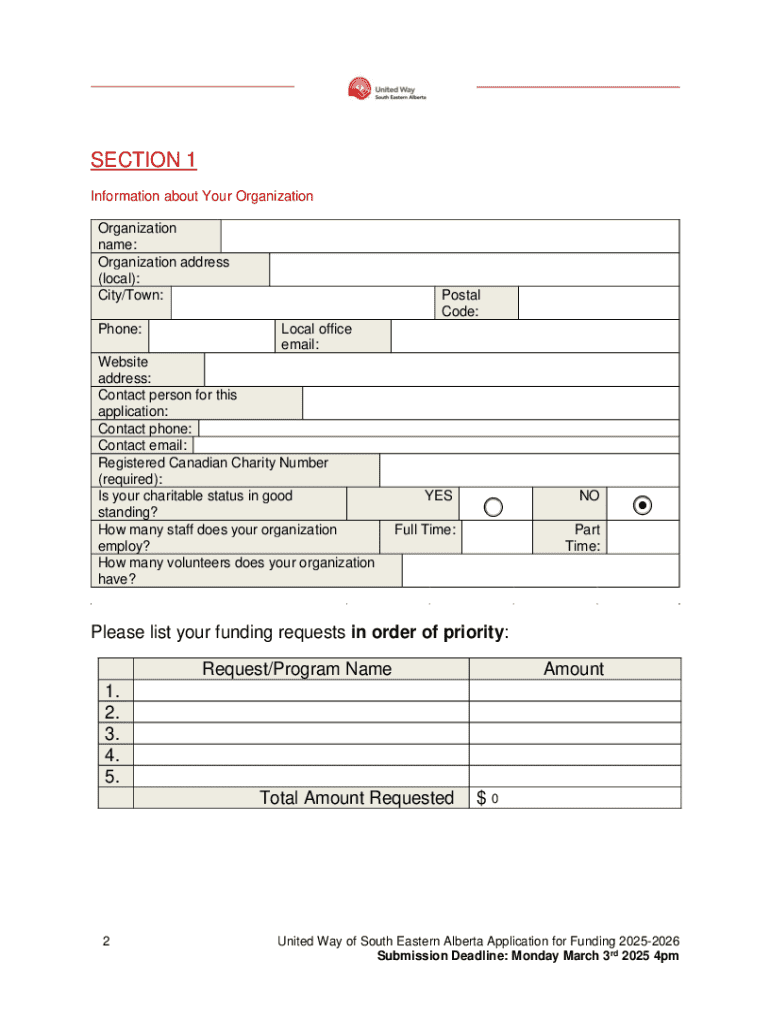 This document outlines the application process for funding from United Way for the years 2024-2025 and 2025-2026, including required supporting documents, application guidelines, deadlines, and detailed