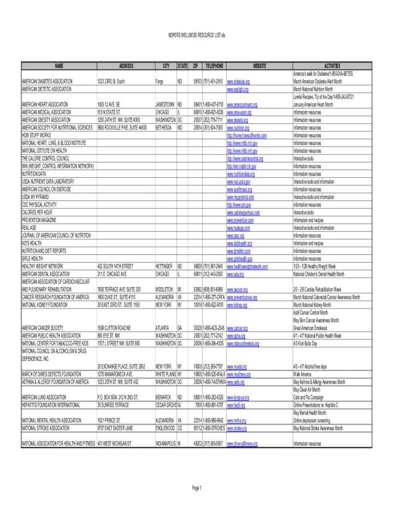 Get the free Ndpers Wellness Resource List.xls