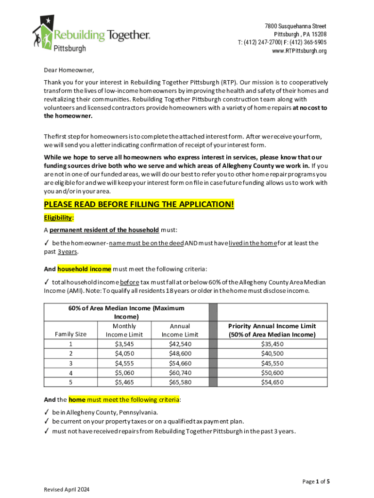 Get the free Rebuilding Together Pittsburgh Interest Form