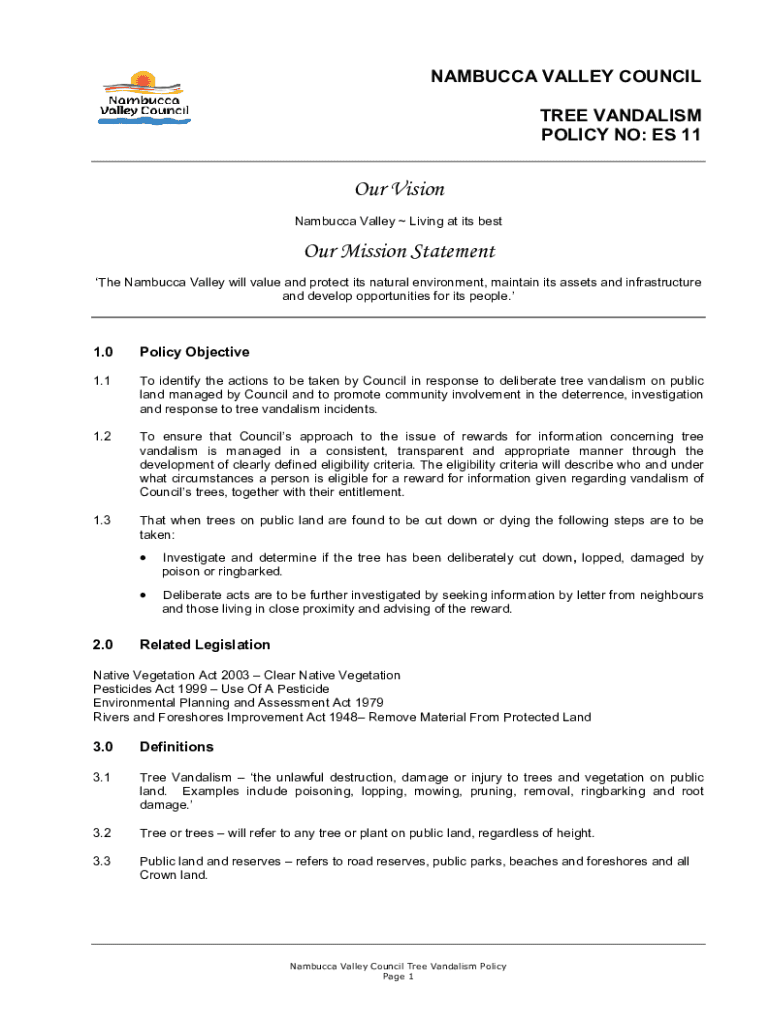 Get the free Nambucca Valley Council Tree Vandalism Policy