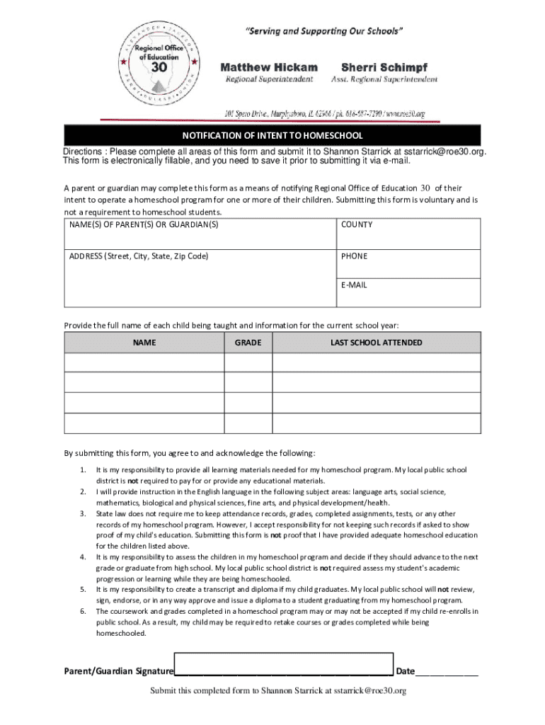 Get the free Notification of Intent to Homeschool