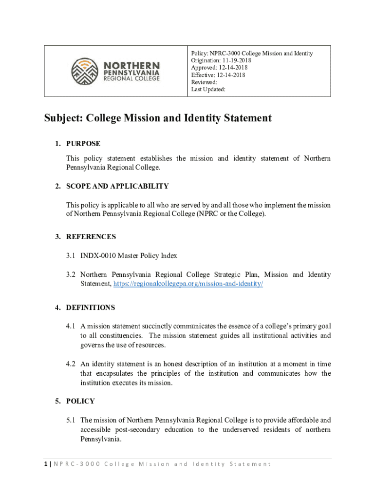 Get the free Nprc-3000 College Mission and Identity