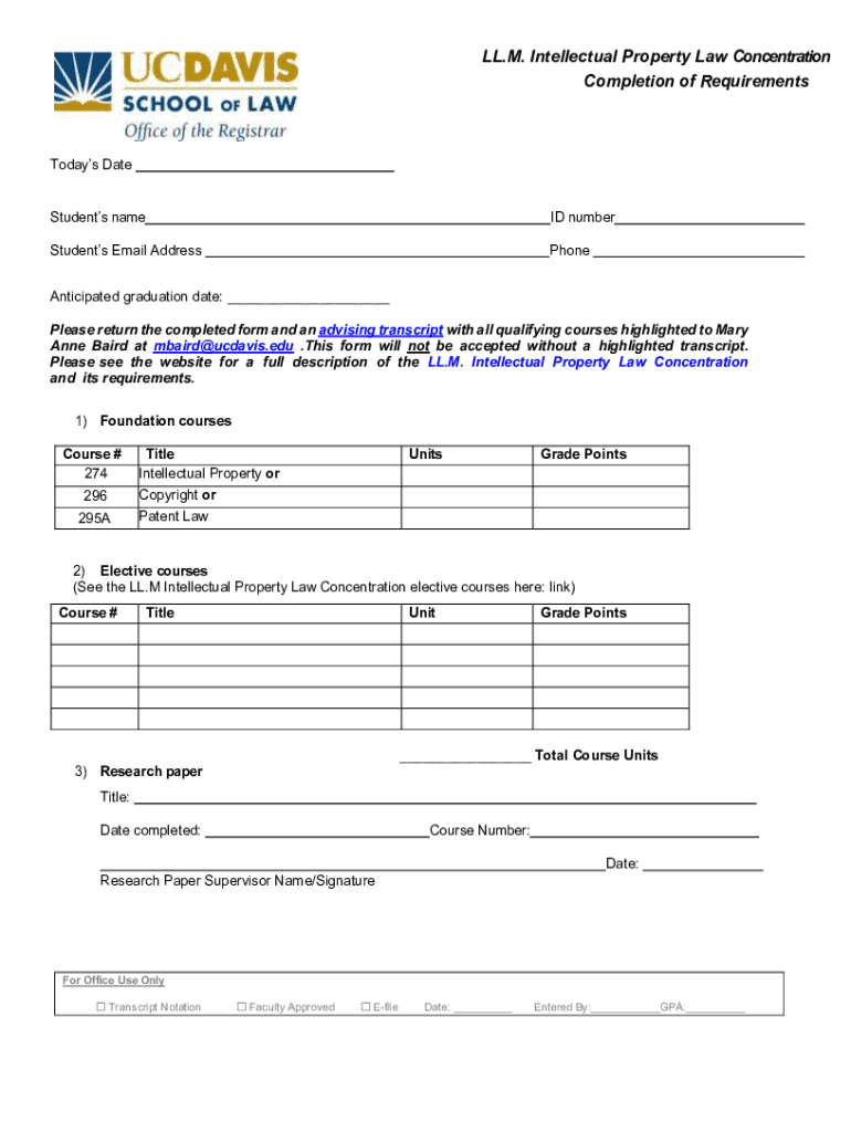 Get the free Ll.m. Intellectual Property Law Concentration Completion of Requirements - law ucdavis