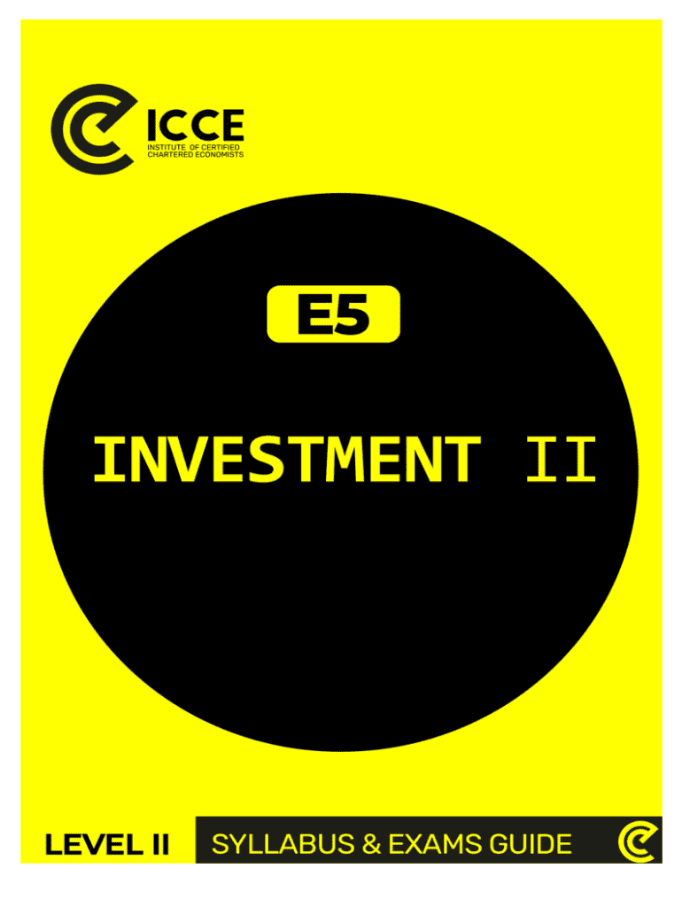 www.charteredeconomist.orgLEVEL II E5 INVESTMENT II SYLLABUS & EXAMS GUIDEwww.charteredeconomist.orgCopyright 2021 by ICCEAll rights reserved. No part of this syllabus and exams guide may be reproduced, distributed or transmitted in any form or means, including photocopying, recording, or other electronic or mechanical methods without the prior written permission of ICCE, except in the case of brief quotations embodied in critical reviews and certain noncommercial uses permitted by law